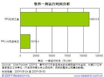 除了用戶覆蓋量,廣告主關(guān)心的莫過(guò)于網(wǎng)站的用戶黏性及用戶活躍度了!反應(yīng)這些情況的一個(gè)重要指標(biāo)就是軟件運(yùn)行時(shí)間。以艾瑞的“軟件一周運(yùn)行時(shí)間分析”指標(biāo)來(lái)看,PPS網(wǎng)絡(luò)電視達(dá)到109013.8萬(wàn)小時(shí),行業(yè)排名第二的軟件運(yùn)行時(shí)間僅為15319.4萬(wàn)小時(shí),此項(xiàng)數(shù)據(jù)PPS領(lǐng)先第二名更是達(dá)到了7倍之巨。一方面,軟件運(yùn)行時(shí)長(zhǎng)反映出用戶在其平臺(tái)上獲取的內(nèi)容更多;另一方面也折射出PPS客戶端豐富的內(nèi)容與流暢清晰的視聽(tīng)體驗(yàn)讓其海量的終端用戶“欲罷不能”。