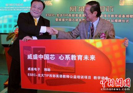 在捐贈(zèng)儀式上,威盛宣布向北京大學(xué)繼續(xù)教育學(xué)院、文理應(yīng)用學(xué)院ESEC教育機(jī)構(gòu)TIP項(xiàng)目捐贈(zèng)一批威盛Nano凌瓏處理器平臺(tái)電腦教學(xué)設(shè)備,這是威盛從2006年開(kāi)始對(duì)該西部英語(yǔ)教師公益培訓(xùn)項(xiàng)目的第三期捐贈(zèng)。與此同時(shí),威盛中國(guó)芯成長(zhǎng)數(shù)字營(yíng)云南分站也正式揭牌,從而將威盛中國(guó)芯成長(zhǎng)數(shù)字營(yíng)的分站數(shù)量增加到21個(gè),基本覆蓋整個(gè)西部地區(qū)。