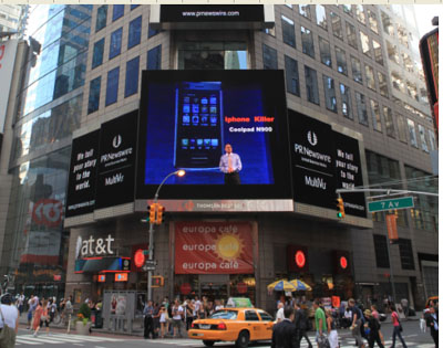由于成為美國近一周來媒體關(guān)注的焦點,作為紐約地標建筑的時代廣場新聞電子大屏對《Yulong Launches Coolpad N900 in China to Combat iPhone》的新聞進行了長時間的播報,中國手機新力量可能對iphone產(chǎn)生的沖擊引起了美國社會的廣泛關(guān)注,這也是國產(chǎn)手機首次亮相紐約時代廣場。