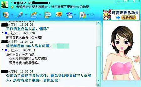 無獨有偶,網(wǎng)友“xiaoyouzi”發(fā)帖說,他是勁舞團(網(wǎng)絡游戲,玩家喜歡簡稱AU)玩家,沒想到找工作遭遇“歧視門”,企業(yè)招聘要求里規(guī)定“不收有勁舞團歷史者”。同時,他在帖子里上傳五張與某人才網(wǎng)人事部領導的QQ聊天記錄。該領導解釋說玩勁舞團的玩家90%人品存在問題,為了保證正常運行,避免素質(zhì)低下人員混進,因此才制定該項制度。該領導竟然直言不諱說“玩勁舞團的90%屬于人格分裂”。