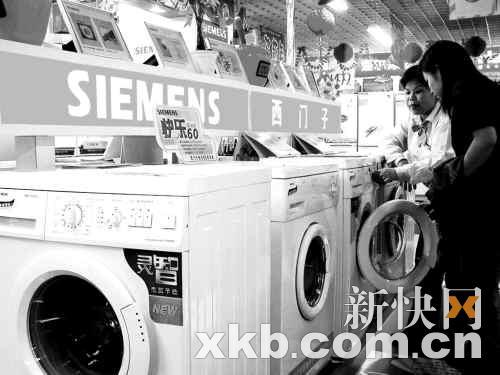 “600多元的雙缸洗衣機(jī)降到399元,1200元的全自動(dòng)降到800多元,不少品牌在1000元左右‘打斗’!比涨坝浾咴谔K寧電器看到,小天鵝5公斤的半自動(dòng)雙缸洗衣機(jī)只賣(mài)388元,而美菱6公斤半自動(dòng)雙缸洗衣機(jī)價(jià)格也只要499元,而且還送100元的禮品。全自動(dòng)洗衣機(jī)方面,5公斤左右的洗衣機(jī)無(wú)論是國(guó)產(chǎn)的美菱、海爾、小天鵝還是外資的三洋、LG、惠而浦的價(jià)格都降到了1000元左右。據(jù)營(yíng)業(yè)員介紹,海爾、榮事達(dá)、小鴨、松下、TCL等國(guó)內(nèi)外知名品牌洗衣機(jī)全線(xiàn)降價(jià)20%左右,最高降幅將達(dá)到40%。