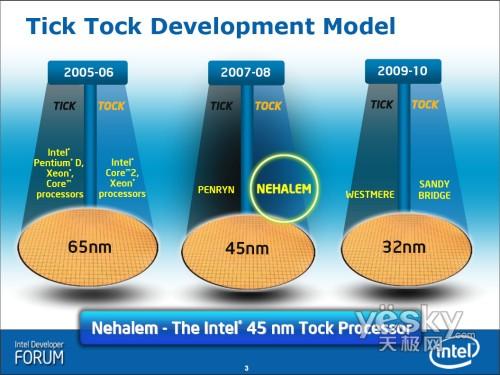 根據(jù)Intel處理器Tick Tock的發(fā)展節(jié)奏:每兩年更新一代微架構(gòu)、每兩年更新一代硅芯片生產(chǎn)工藝、微架構(gòu)和硅芯片工藝更新交替進行,08年是偶數(shù)年,是到了更新微架構(gòu)的年份,新的Nehalem微體系架構(gòu)已于去年10月來到了廣大消費者的面前。