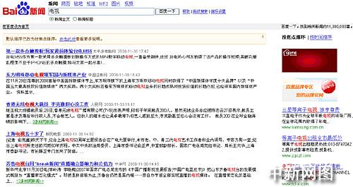 而百度則將通過聚合各家新聞機構的內(nèi)容獲得的流量轉(zhuǎn)化成了自己的廣告價值。在百度新聞搜索中搜索“電視”后,除了各家新聞網(wǎng)站關于電視的相關新聞外,還會在頁面右側(cè)看到多家電視廠商的廣告(下圖)。而通過這些廣告獲得的收入,百度顯然不會與提供內(nèi)容的新聞單位分成。
