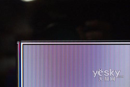 三星UA46B7000WF采用了三星原裝S-PVA面板,從像素點(diǎn)能明顯的看出來(lái)。全像素點(diǎn)對(duì)點(diǎn)顯示對(duì)于三星來(lái)說(shuō)并不是什么難事,分辨率測(cè)試卡點(diǎn)擊放大后可以看到測(cè)試線明顯,沒有出現(xiàn)粘連的情況。