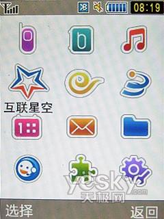 在界面方面,該機(jī)延續(xù)三星傳統(tǒng)風(fēng)格,12宮格的主菜單平鋪出主要功能,待機(jī)桌面可以顯示或關(guān)閉鐘表和日歷,五維導(dǎo)航鍵支持快捷操作。
