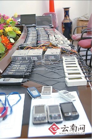現(xiàn)場查獲了3臺筆記本電腦,一臺臺式電腦,37部短信群發(fā)器,170余部用于連接“土炮”發(fā)短信的各型手機(jī),手機(jī)中均裝有短信卡,用于犯罪時轉(zhuǎn)賬用的40余張各個銀行的銀行卡、存折。3000余張他們自己設(shè)計(jì)制作的某某名牌牙膏商品銷售刮刮獎卡、2000余張香港某某集團(tuán)刮刮獎卡。10余部自己使用轉(zhuǎn)接電話的手機(jī)。手機(jī)卡100余張等贓物。