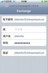 ⑵ 由于聯(lián)通公司郵箱使用的是Exchange,為此選擇“Microsoft Exchange”圖標進入配置界面(Gmail郵箱請選擇“Gmail”,雅虎郵箱請選擇“YAHOO!”,其他常用郵箱一般選擇“其他”)