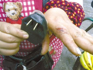 “這就是電池爆炸后留下的傷口。今天是第三天了,傷口還是痛!弊蛱煜挛,記者見(jiàn)到了最近為手機(jī)電池傷透了腦筋的鄧女士,她揚(yáng)起左手食指給記者看時(shí),還有些心有余悸。因?yàn)榇饲暗谋,她左手食指第三個(gè)關(guān)節(jié)處已皮開(kāi)肉綻,一條近2厘米的傷口很顯眼。