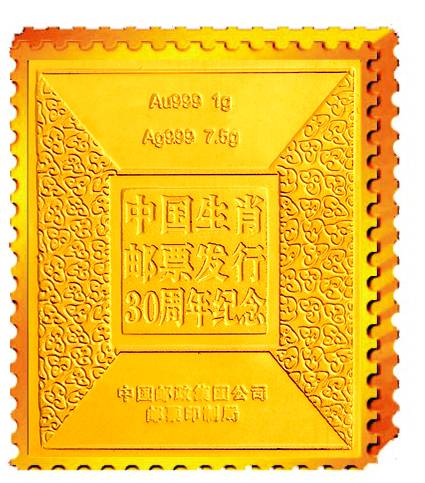 2010年是中國首輪12生肖郵票發(fā)行30周年紀(jì)念,近日,由中國郵政集團(tuán)公司郵票印制局監(jiān)制的第一套“首輪12生肖郵票金磚”正式發(fā)行。此舉結(jié)束了“生肖郵票”和“賀歲金磚”每年都只能各自獨(dú)立發(fā)行一枚的歷史,一舉實(shí)現(xiàn)了擁有一套生肖藏品,就能同時(shí)擁有二個(gè)生肖大全套的夢想。