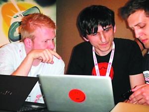 成功攻破iPhone的文森佐·埃奧佐和拉爾夫·溫曼在比賽現(xiàn)場(chǎng)。