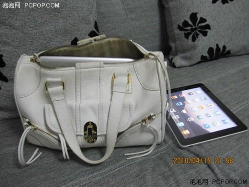 今天拿到iPad,放在包包里和姐妹逛了2小時街,手里提著包包有些重量,但覺得還可以接受,并不是特別沉,但時間長了有點勒手,俗話說“好手難提四兩”。我平時喜歡背大包,可以放很多的東西,經(jīng)常在地鐵里看到有女孩包包里放小說,有次上班高峰時,看到一個短發(fā)MM坐著用EeePC最薄的那款貝殼機帶著耳機看電影,很佩服她的閑情,但也同時發(fā)覺確實有很多志同道合的MM喜歡背大包。有人說iPad可以當電子書,地鐵里看電子書的人很多,攜帶是個問題,這里拿自己的包包示范給大家看。
