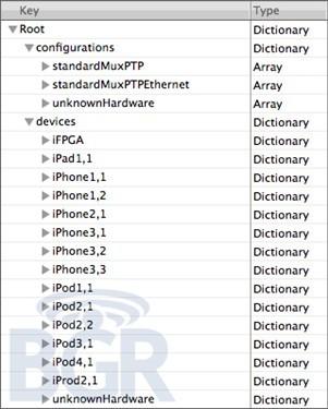 一份內(nèi)部型號的文檔顯示,上一代的iPhone 3GS內(nèi)部型號為“iPhone2.1”因此列表中其后的“iPhone3.1”、“iPhone3.2”、“iPhone3.3”就很有可能是最新一代iPhone手機的內(nèi)部型號。一共有三款,其中之一已被確定為CDMA版本的iPhone。