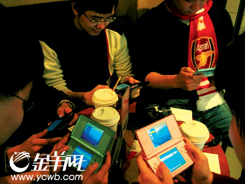 “哇,誰(shuí)用‘飛毛腿’炸我。俊斌@嘆嫉叫之聲此起彼伏。昨日下午,公園前地鐵站附近一間咖啡店里,6個(gè)網(wǎng)友操控著時(shí)尚的NDSL游戲機(jī)在玩賽車(chē)游戲,過(guò)著他們的春節(jié)。