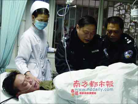 記者趕到廣東省第二中醫(yī)院,鄒本固仍處在昏迷中,正在急救室。輸氧、輸液,將近一個(gè)小時(shí)后,鄒本固終于睜開(kāi)雙眼。
