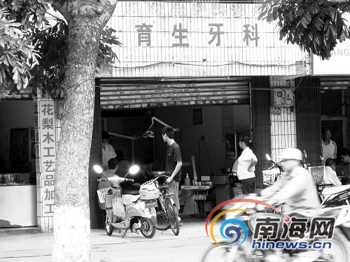 有的黑診所關(guān)閉了,但有的黑診所被曝光后仍在開業(yè)。根據(jù)美蘭區(qū)衛(wèi)生局公布的名單,位于青年路15號(hào)的“馮育生牙科診所”屬于“黑診所”。但記者發(fā)現(xiàn),這家牙科診所仍在開業(yè),兩名“醫(yī)生”正給患者治牙,診所外還有幾個(gè)病號(hào)正在等候。記者在該診所看到,這家診所大約20多平方米,放上兩張床椅和一些設(shè)備后顯得較為擁擠,墻壁上只掛了一個(gè)稅務(wù)登記證,《醫(yī)療機(jī)構(gòu)執(zhí)業(yè)衛(wèi)生許可證》等證件未明示。