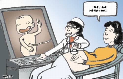 王女士懷孕已經(jīng)6個月,不久前,她從一位同學那里聽說西安的一家醫(yī)院在孕檢為胎兒篩查的同時,還可以為肚里的寶寶拍寫真,就迫不及待地來到醫(yī)院,想為自己肚里的寶寶拍張照!拔液孟肟纯此(她)長得什么樣子!”王女士說。