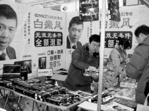 這位工作人員說,一旦馮小剛把他們告了,他們沒錢賠給馮小剛,就有機會讓馮小剛使用他們的藥,治療白癜風(fēng)。這家藥品企業(yè)的做法也的確產(chǎn)生了效果,不少人圍著展臺,“馮小剛給代言的?”“馮小剛有白癜風(fēng)?”