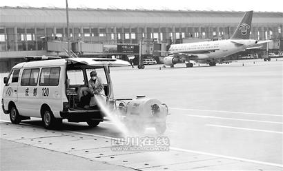 “4月30日起,四川機場集團就已按照民航總局的通知啟動預(yù)防預(yù)案,并發(fā)布工作流程。可以說雙流機場的防疫布控工作已經(jīng)在有序地進行中!彪p流機場辦公室主任余吟波介紹,整個機場集團成立了6個特別小組,包括排查組、現(xiàn)場體溫檢測組、物資保障組、消毒組、信息組以及轉(zhuǎn)運組。