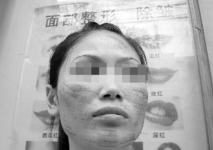 6月10日晚,喜歡美容的李信瓊在金花橋金興南路97號一家美容店內(nèi),做了一次所謂的“光子祛紅血絲”。但半個小時的功夫,她那張?jiān)詾楹赖陌變裘嫒荩共紳M了一條一條令人觸目驚心的“燒痕”。昨日,在屈辱和絕望的雙重打擊下,李信瓊再次來到店內(nèi)討要說法……
