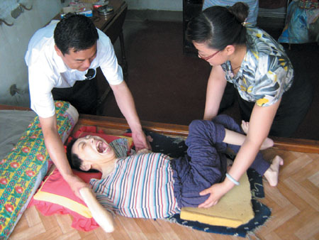 今年52歲的董英杰是辛寨子街道砬子山村一名普通農(nóng)村婦女。當(dāng)年,董英杰懷上了和丈夫的第二個女兒時,因為當(dāng)時認(rèn)知有限,生產(chǎn)前董英杰沒有去醫(yī)院檢查,沒想到,厄運降臨到了這個農(nóng)村家庭,穎欣都6個月大了,但仍不會張手要求抱抱,董英杰夫婦越想越不對勁,女兒三歲的時候,他們帶著她到北京去檢查,結(jié)果是女兒患上了嚴(yán)重的腦癱,不但四肢、身體無法行動,連智力都是殘疾的。