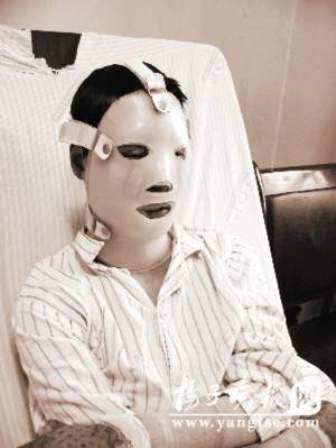 就在這個時候,整形科醫(yī)生請來了東南大學(xué)附屬中大醫(yī)院康復(fù)科的矯形工程師趙勇,他們在李剛臉上仔細(xì)地測量、取模型,幾天后,就為他帶來了一件特制壓力面具。矯形師告訴李剛,這是當(dāng)今國際上先進(jìn)的科研成果,專門針對燒、燙傷后的新生皮膚,采取適度的、持續(xù)的壓力治療,改變新生皮膚內(nèi)膠原纖維的生長排列方式,防止皮膚疤痕的過度增生,讓它按照我們的需要,長成“好看”的樣子。但是這個壓力面具,除了洗臉、吃飯之外,必須要持續(xù)佩戴,才能起作用。自此,李剛就變成了病房里“最酷的面具人”……
