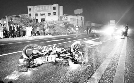 昨晚7時(shí)15分左右,閩侯上街福銀高速公路福州西出口的第一個(gè)紅綠燈處,一輛小車撞上了一輛摩托車,摩托車載著四個(gè)人,一人當(dāng)場身亡,其他三人傷勢嚴(yán)重,被送往醫(yī)院搶救。