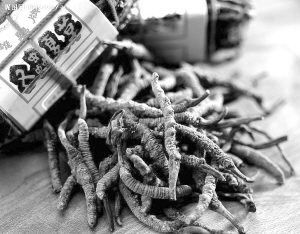 冬令服食冬蟲夏草是一件時髦事兒,F(xiàn)在的市場價是48萬元1公斤,價錢勝黃金。想當(dāng)初,上世紀(jì)80年代,國家的收購價是1公斤200-300元,那時醫(yī)院藥房是用大鐵盒裝此藥的。