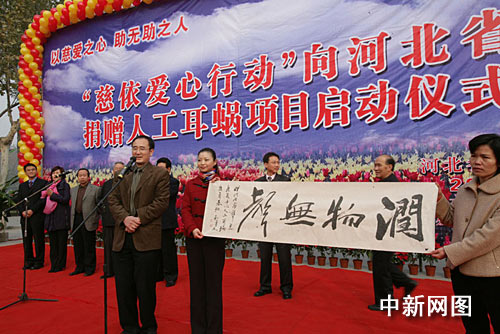 中新網(wǎng)11月10日電 11月10日,由海外愛(ài)心人士和畫(huà)家張和勇發(fā)起的 “慈依愛(ài)心行動(dòng)”, 向河北省貧困聾兒捐贈(zèng)人工耳蝸儀式在石家莊舉行,此次受助的10名重度耳聾的聾兒分別來(lái)自全省8個(gè)地市的貧困家庭,每名聾兒獲贈(zèng)一套價(jià)值16.8萬(wàn)元人民幣的澳大利亞人工耳蝸,本月將在北京陸續(xù)接受植入手術(shù)。據(jù)悉,此次捐贈(zèng)是境內(nèi)目前規(guī)模最大的一次向貧困聾兒捐贈(zèng)人工耳蝸的慈善活動(dòng)。