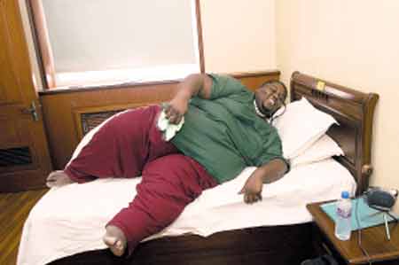 阿隆佐“老家”在美國芝加哥,與天津有13小時左右的時差,因此,他到津第一天就睡覺倒時差,睡醒后的第一件事就是稱體重。他踩上體重計(jì)后,醫(yī)生一連放了4個秤砣才測出他的重量——284.5公斤。在天津減肥生活的一年內(nèi),他計(jì)劃將體重減至90公斤左右。