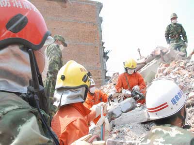 10時(shí)25分,消防官兵在對(duì)漢旺鎮(zhèn)災(zāi)區(qū)天池礦業(yè)公司家屬樓進(jìn)行搜索救援時(shí),突然聽到廢墟中傳來一陣微弱的呼救聲。還有幸存者!馬上進(jìn)行救援!全力挽救幸存者的生命!隨著現(xiàn)場(chǎng)指揮員的一聲令下,參戰(zhàn)消防官兵在指揮員的嚴(yán)密組織下科學(xué)施救,充分發(fā)揮消防部隊(duì)的裝備優(yōu)勢(shì)和救援經(jīng)驗(yàn),迅速使用液壓剪、切割機(jī)迅速清除幸存者上方的鋼筋、鐵條等物,搬除身上埋壓的石板、水泥塊,為幸存者開辟救生通道。