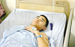 昨日下午,記者在醫(yī)院目睹了薛梟經(jīng)受的系列治療,過程很痛楚,但他很能忍耐。面對來訪者關(guān)心的詢問,他笑著回答:“沒事!睂嶋H上他右臂截肢后傷口一直很痛,夜里很難安眠。薛梟被埋時耳朵進了沙石,這些沙石要掏出來為防以后失聰。掏耳朵時疼極了,還出了血,需要等結(jié)疤后再次掏。他的右腿肌肉因為受壓,昨天開始理療。此外他的肺部在被埋時吸入異物,導致他咳嗽不斷。母親譚忠燕又痛心又自豪地說:“這孩子很能吃苦,我相信他一定能挺過去!