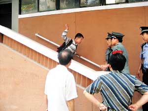 “和叔叔走,叔叔帶你回家!泵窬托囊(guī)勸小濤,但是小濤根本不聽,“不,我就不回家,我的事情你們不用管,你們真愛管閑事!”民警和兩名保安連拉帶拽,費了很大的勁將小濤拖到樓里。在樓梯上,小濤仍不停地對民警又打又踹,折騰了好半天,民警的胳膊也被他抓出了血道。
