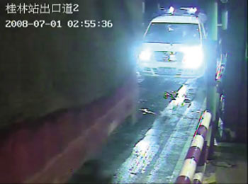 救護車進站時的監(jiān)控錄像截圖。