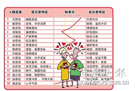 目前流行的“性格婚檢”,主要包括“卡特爾16人格因素問卷”等。這一測試體系是美國心理學(xué)家卡特爾運用一系列嚴(yán)密的科學(xué)手段研制出的,目的是認(rèn)清自己和對方。