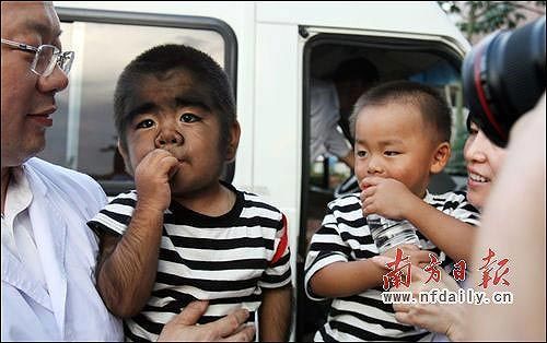 小文才的雙胞胎兄弟身上沒有多毛的癥狀。昨日,深圳一醫(yī)院醫(yī)療專家組專程將“毛孩”文才,和同樣“長毛”的爺爺、爸爸、姑姑接到深圳,開始免費的長期外形和心理救助治療。記者何俊攝