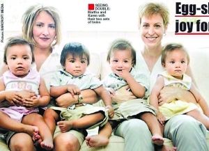 2007年8月,瑪莎在加州河濱市的一家醫(yī)院中生下了一對龍鳳胎索菲亞和阿列克斯。僅僅22小時之后,凱倫也在另一家醫(yī)院中生下了一對龍鳳胎安德魯和新娜。