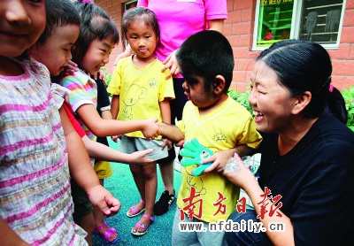 在數(shù)次聯(lián)系幼兒園遭拒后(本報(bào)7月23日曾作報(bào)道),“毛孩”文才昨日終于背上書(shū)包走進(jìn)梧桐山中英文幼兒園,開(kāi)始了他在深圳的“上學(xué)夢(mèng)”。昨日,和同齡小朋友在一起玩,毛孩臉上洋溢著幸福的微笑。而他的雙胞胎弟弟因沒(méi)有受到資助入學(xué)而傷心流淚。“毛人”家族救助工程專(zhuān)家組組長(zhǎng)田亞華表示,醫(yī)院“救命不救窮”,培養(yǎng)毛孩家族的自救意識(shí)對(duì)他們的心理矯正至關(guān)重要。
