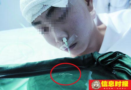 據(jù)小龍的主治醫(yī)生吳杰說,“醫(yī)院對小龍兩年來的影像資料進(jìn)行了比較,發(fā)現(xiàn)病灶的位置居然發(fā)生了兩厘米多長的移動。什么東西能夠在人體內(nèi)‘位移'這么長距離呢?最大的可能應(yīng)是寄生蟲了。”之后,醫(yī)生通過開顱手術(shù),果然從小龍的腦袋里“釣”出一條雖斷裂成三段,但主要部分依然活生生的寄生蟲——裂頭蚴。據(jù)小龍父親介紹,由于迷信多吃當(dāng)?shù)厣嚼锏囊吧嗤苣軌驈娊∩眢w,小龍父親從小龍3歲時就開始為其捕捉青蛙食用,夏季幾乎天天都能吃上一餐,一直到其六歲后方才減少捕食。