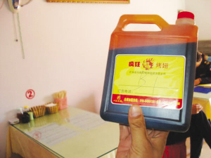 “我們是正規(guī)加盟店!眻(zhí)法人員來到位于桂林路附近的一家變態(tài)烤翅店,經(jīng)理拿出所有的開店和加盟手續(xù),稱他們手續(xù)齊全。執(zhí)法人員讓該經(jīng)理拿出了制作變態(tài)烤翅的調(diào)料——“BT油”,他拿出了一個(gè)5升的小白桶。該經(jīng)理說,他們加盟的時(shí)候,北京總店就給他們提供這種調(diào)料,總店稱是“商業(yè)秘密”,從來沒透露過是什么制成的。他們也用其他調(diào)料代替過,但做出來的雞翅都不如用“BT油”做的好吃。