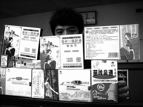 “我有鼻炎,常常鼻塞,有沒有什么好藥?”記者問!氨侨?”營(yíng)業(yè)員從柜臺(tái)里面又取出一盒藥說,“你用苗嶺鼻通生態(tài)液吧,也是全中藥,效果特別好。”