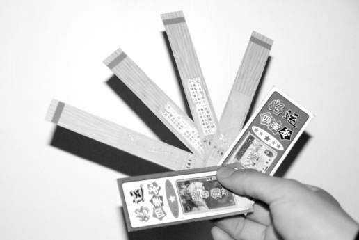 該棚子內(nèi)除了抽簽外,還有大量的精美“小賭卡片”,上面印制著5角、1元和2元人民幣圖案,還寫著“20元以上獎學金到廠家兌獎,20元以下獎學金由小賣部支付,即開即樂”等字樣。
