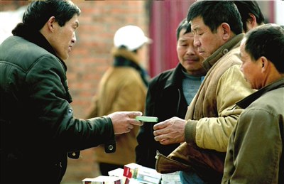 往巷子內(nèi)前行約20米,另外一名40歲上下的女子同樣推著三輪車在賣藥。她說(shuō),這些藥品是她從河南洛陽(yáng)的一個(gè)醫(yī)藥公司進(jìn)的,所以比藥店的要便宜。距該女子不遠(yuǎn)處,還有一名身材較瘦的中年男子在賣藥。2個(gè)小時(shí)內(nèi),在該攤位前買藥的約有六七人,他們都是附近工地的農(nóng)民工,購(gòu)買的大都是感康、白加黑之類常見(jiàn)感冒藥。工人楊師傅稱,一周前感冒時(shí)他就是在這里買的藥,“也沒(méi)覺(jué)得哪不對(duì),反正過(guò)幾天感冒就好了”。另外一名工人稱,他們并不太關(guān)注這種街頭出售的零散藥品的真假,“這些藥都差不多吧,看著和藥店里的一樣,應(yīng)該出不了問(wèn)題”。