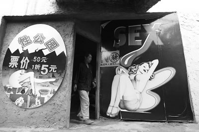 記者留意到,這是一座長廊式的公園,招牌處是公園唯一的入口,“禁止未成年人入內(nèi)”的字樣旁,是一個穿著比基尼的性感女郎的彩畫。園中還堆放著不少雕塑,兩個一絲不掛的男雕塑旁,便是各種性藥的介紹,不過文字中也闡明性藥對人體的危害。另外,園內(nèi)還有各個朝代性史的介紹,及如何防治艾滋病和性病的文字。
