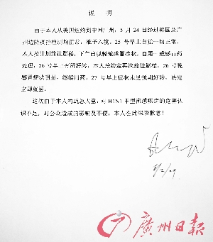 出院在即且不想被媒體打擾的“公眾人物”李某,留下一封信交付給醫(yī)院。昨日,記者從廣州市第八人民醫(yī)院獲取其寫給公眾的“說明”。由于超過三天無癥狀且兩次檢測均為陰性,他已符合衛(wèi)生部出院標準,其在醫(yī)生同意下,打算悄悄離院。