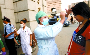 昨日,該校各個(gè)大門都有保安值守,檢查進(jìn)出人員的證件,并對入校人員進(jìn)行體溫檢測。一份23日發(fā)布的緊急通知稱:根據(jù)學(xué)校甲型H1N1流感形勢及上級防控特殊要求,開學(xué)第一周確定為甲流緊急防控期,教職工、學(xué)生必須體溫檢查。