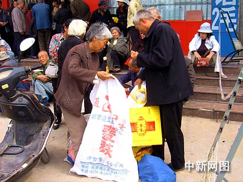 開(kāi)封市一家保健品專賣店門(mén)前,一種保健食品正在搞促銷活動(dòng),前來(lái)購(gòu)買的人絡(luò)繹不絕,其中絕大多數(shù)是農(nóng)民。記者在現(xiàn)場(chǎng)看見(jiàn)一對(duì)農(nóng)民夫婦,正在往大塑料袋里裝保健食品。這對(duì)農(nóng)民夫婦告訴記者,他們是在聽(tīng)了電臺(tái)的廣告后,才從鄉(xiāng)下趕到開(kāi)封市購(gòu)買的,這些“藥”花費(fèi)了近3000元。