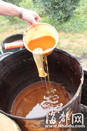 在福清城區(qū)、宏路、鏡洋、漁溪、東張等地的小飯館里收集泔水,運到鏡洋鎮(zhèn)東風村東林自然村一個偏僻的果園里加工成地溝油,然后又偷運到當地一些小飯館里。經過簡單加工的地溝油被消費者吃進肚子……本網記者在當地幾位熱心讀者的幫助下,經過數月暗訪,昨日,與鏡洋鎮(zhèn)工商所、鏡洋鎮(zhèn)派出所一起,將這個地溝油地下加工窩點端掉。