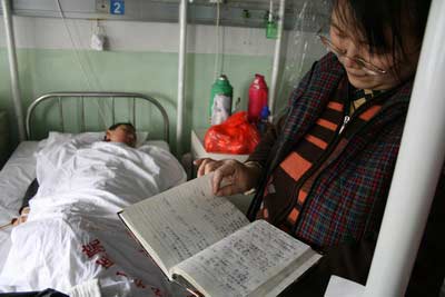 宋玉華取出一個(gè)小日記本,翻看著許巖兩年來的治療記錄,心疼地說:“有一次我拔牙的時(shí)候還疼得‘哎呀哎呀’的呢,可他做腰穿、骨穿時(shí),從未喊過一句疼,還總是笑著說沒事!迸c許巖住在同一病房的其他患者家屬,也一再夸獎(jiǎng)許巖的堅(jiān)強(qiáng)和樂觀。
