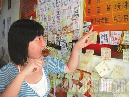 變態(tài)烤翅店內(nèi)留言板上,密密麻麻地貼滿了顧客留言