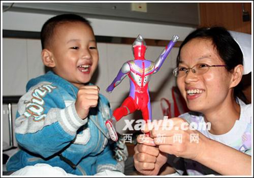 9月26日早上6時,小郎錚在父母陪同下由綿陽到達西安。剛下火車時,小家伙顯得異常興奮,與前來迎接的唐都醫(yī)院工作人員熱情擁抱。到達醫(yī)院后,醫(yī)護人員以最快速度為郎錚進行了X光片、心電圖、肝功、腎功等常規(guī)項目檢查。